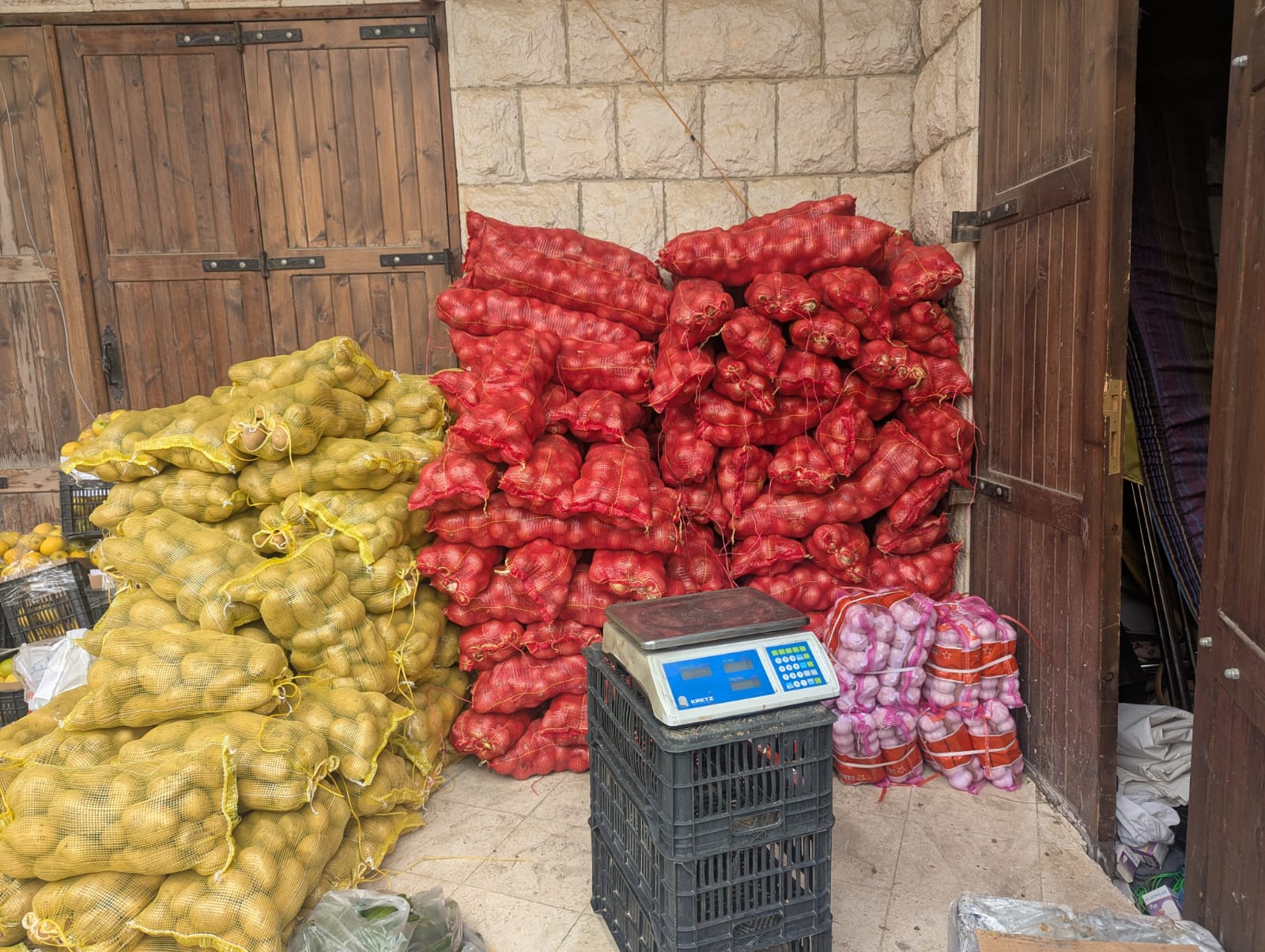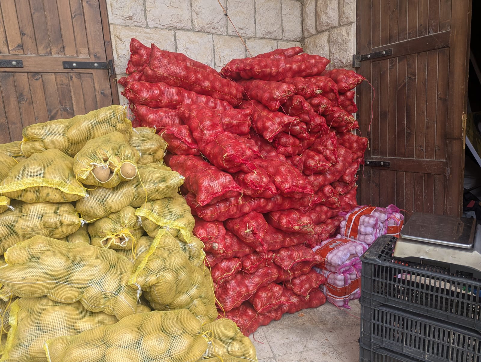 في للأسبوع # الاول تم توزيع: حصص بطاطا وبصل (وخضار الفتوش )